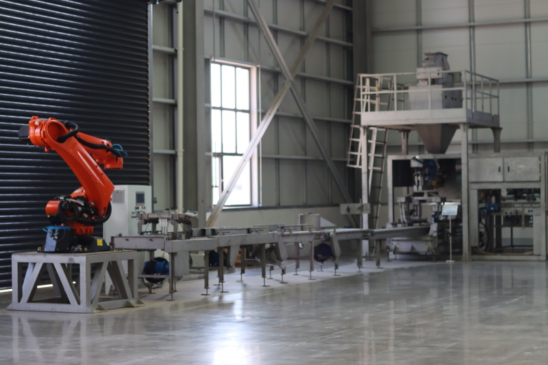 全自動小袋包裝機和機械手裝車機聯合作業的優